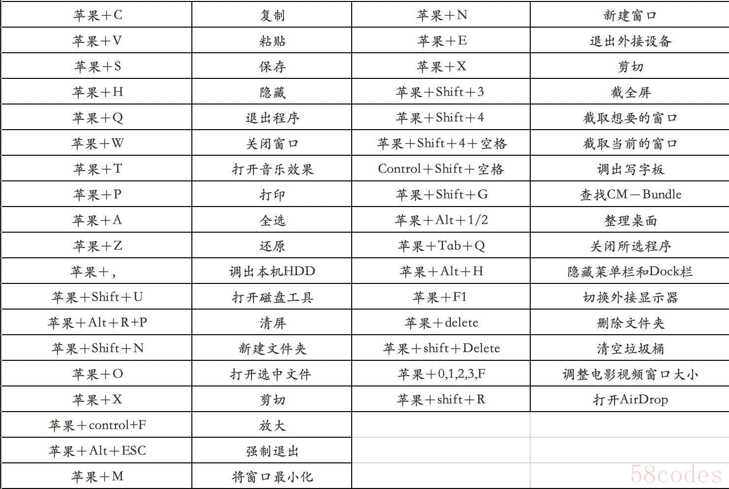command+Alt+esc强制退出 command+N新建窗口 command+E退出外接设备
