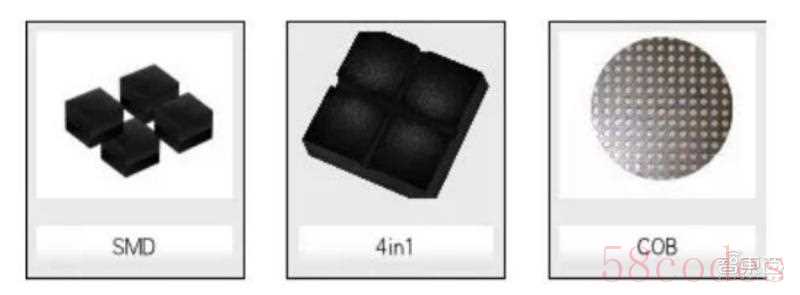 从左至右:SMD封装、“四合一”IMD封装、COB 封装