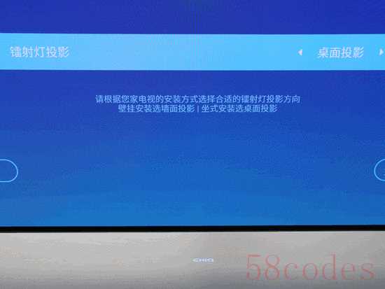 这里就不得不提长虹CHiQ电视Q5A的LOGO镭射灯投影功能,用户可以根据电视的安装方式选择合适的镭射灯投影方向,比如壁挂或坐式,LOGO所投射的区域就会有所变化,如下图所示: