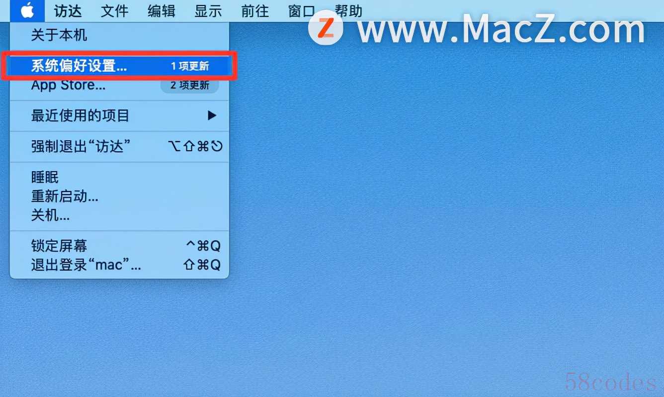 2.  选择 "系统偏好设置 (System Preferences)"。
