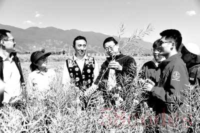 中国工程院院士、中国农业大学资环学院教授张福锁(左三)在云南大理古生村科技小院查看作物长势。刘铮摄/光明图片