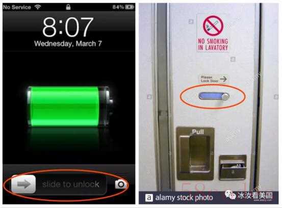 iMac团队当务之急是:如何解决屏幕上面的错误操作?这一问题,被苹果公司的交互设计师Freddy Anzures在一个最不可能解决问题的地方搞定了:厕所里...Freddy在出差飞机上使用卫生间时,注意到飞机卫生间门上的横滑锁。就是这个厕所拉栓,最后变成了iPhone上的开屏设计...为了测试这个功能的易用性,Freddy把被锁住的设备拿给他三岁的女儿,被他的女儿轻松横滑解锁。
