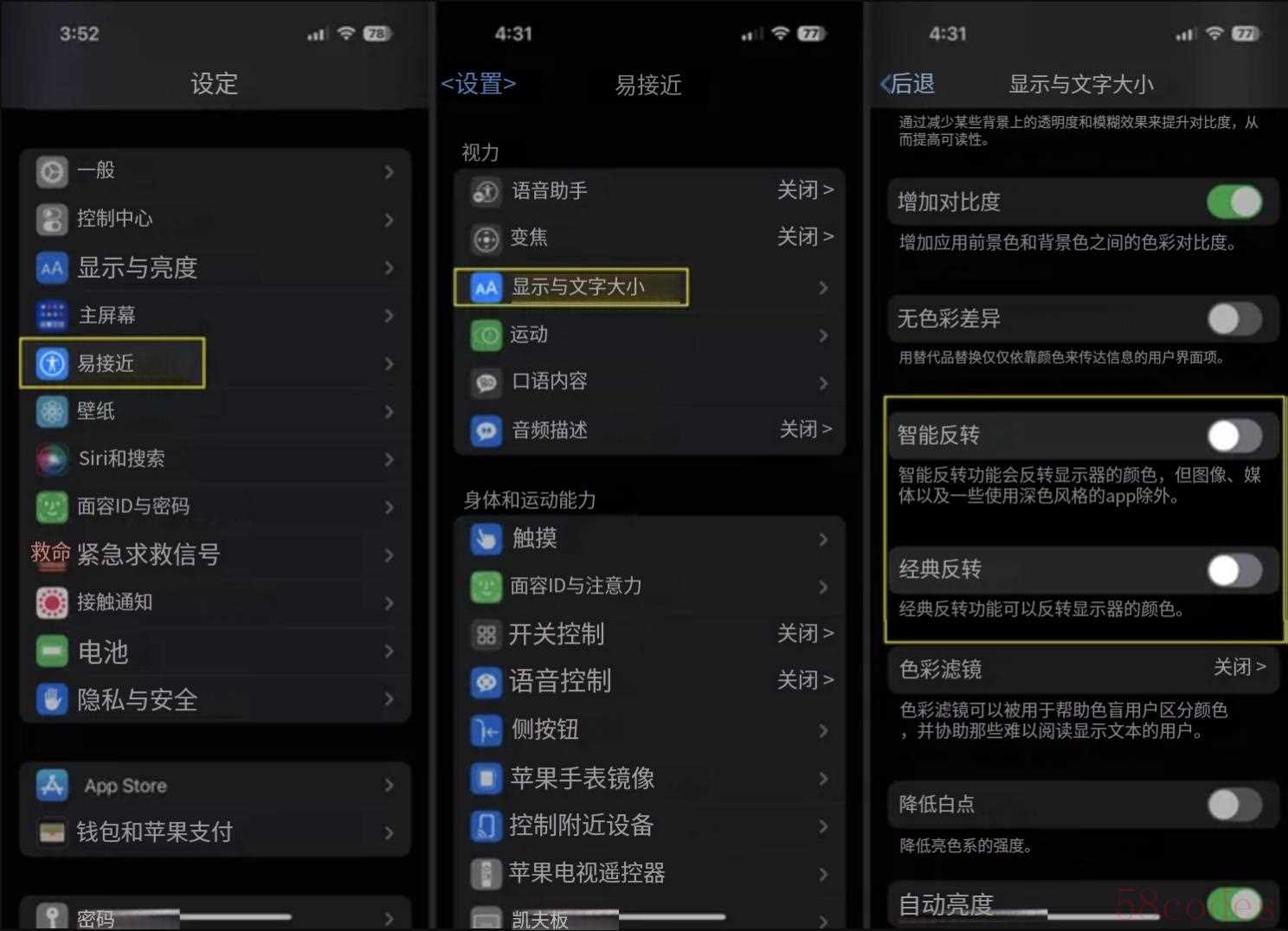 夜里看字、强对比需求时很顶用;智能反转会尽量不反转照片/视频等内容,观感更自然。