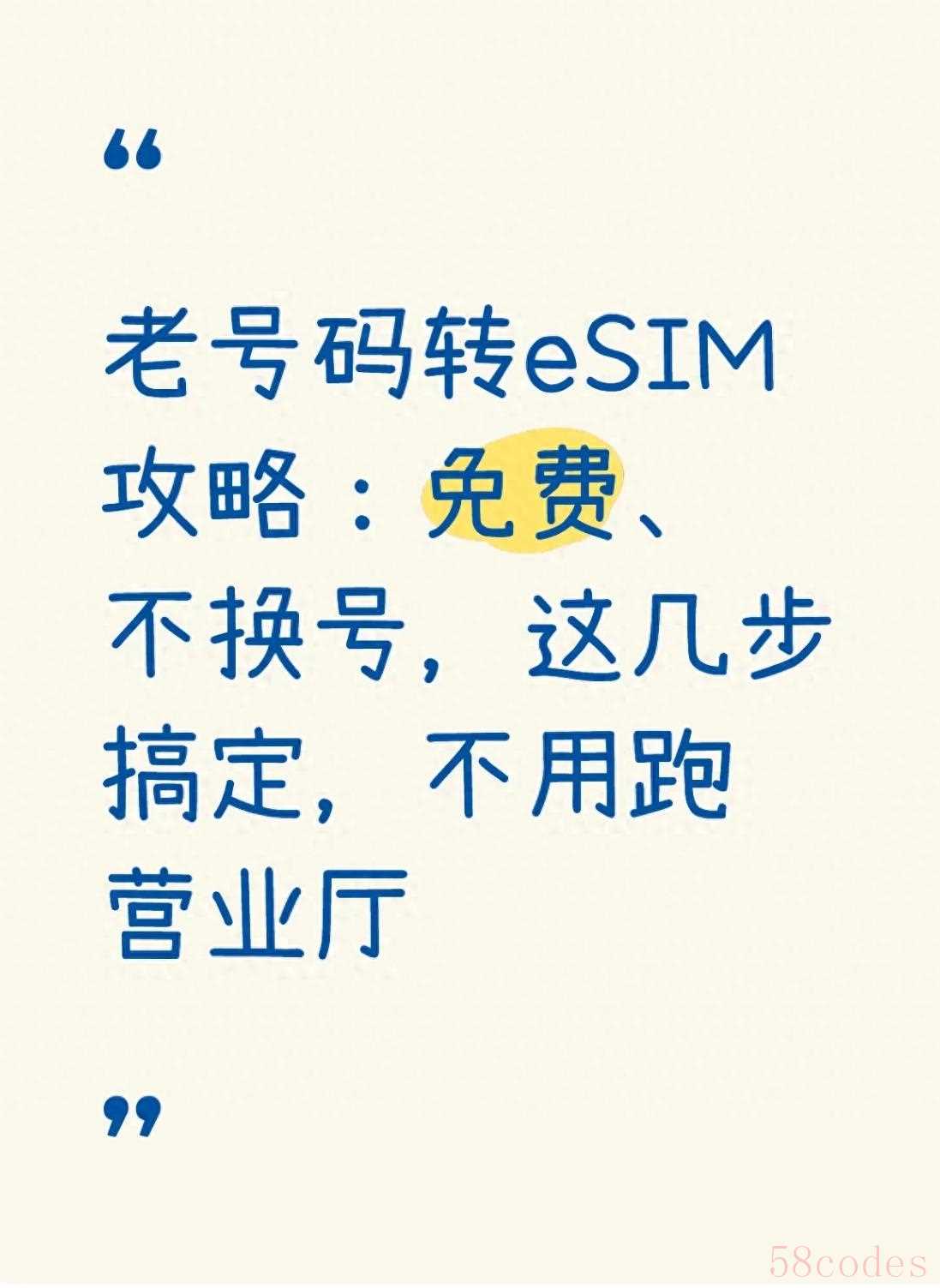 老号码转eSIM,实现免费、不换号、不用跑营业厅,这确实是一个好消息!以下是一份详细的攻略,帮你一步步完成操作: