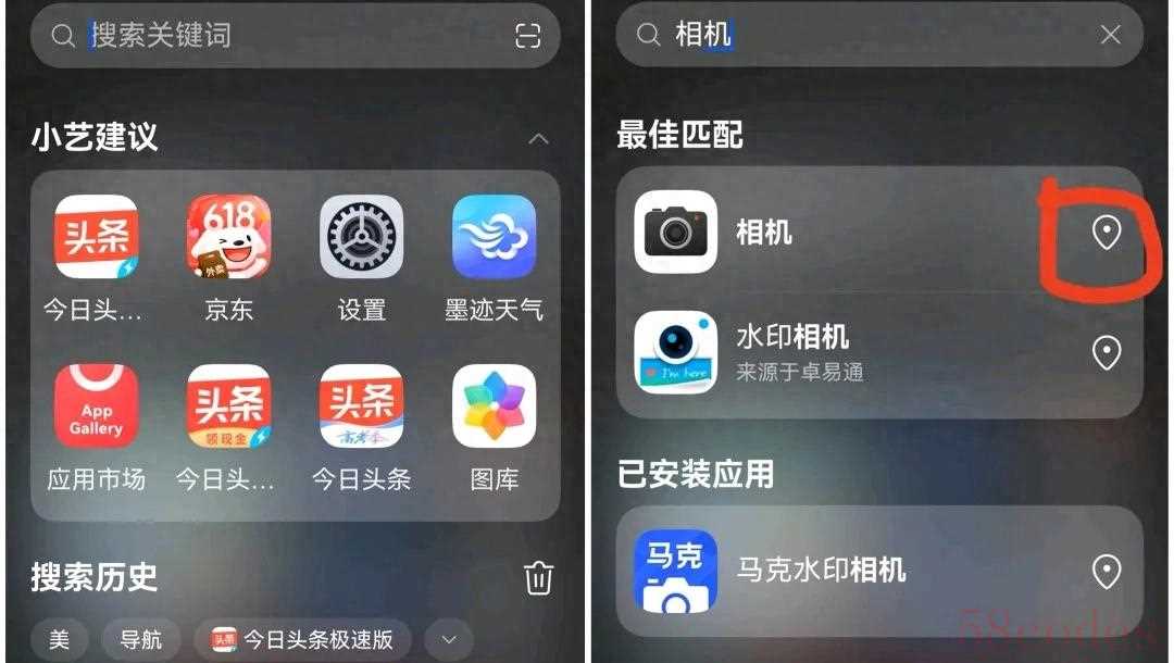 如何快速的查找APP很位置,特别是被隐藏的图标,如笔者升级新鸿蒙系统后,即使是在锁屏界面上能看到相机图标,在桌面上相机图标莫名其妙的找不到,也可能是桌面图标太乱的原因。