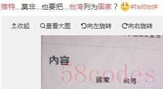 推特将台湾、香港、澳门列为“国家”。推特截图