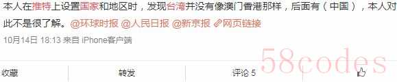 还有人在10月14日就发现了台湾被列入“国家”的现象。↓