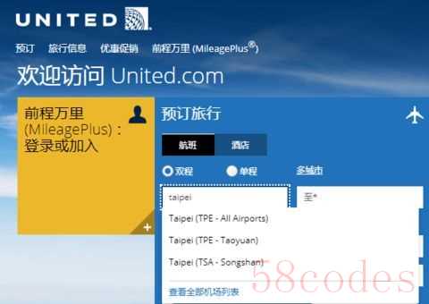图为美国联合航空官网也在“台北”后面删除“台湾”。