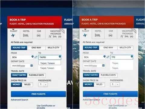 图为达美航空更改前后对比,现已删除“台北”后面的“台湾”。