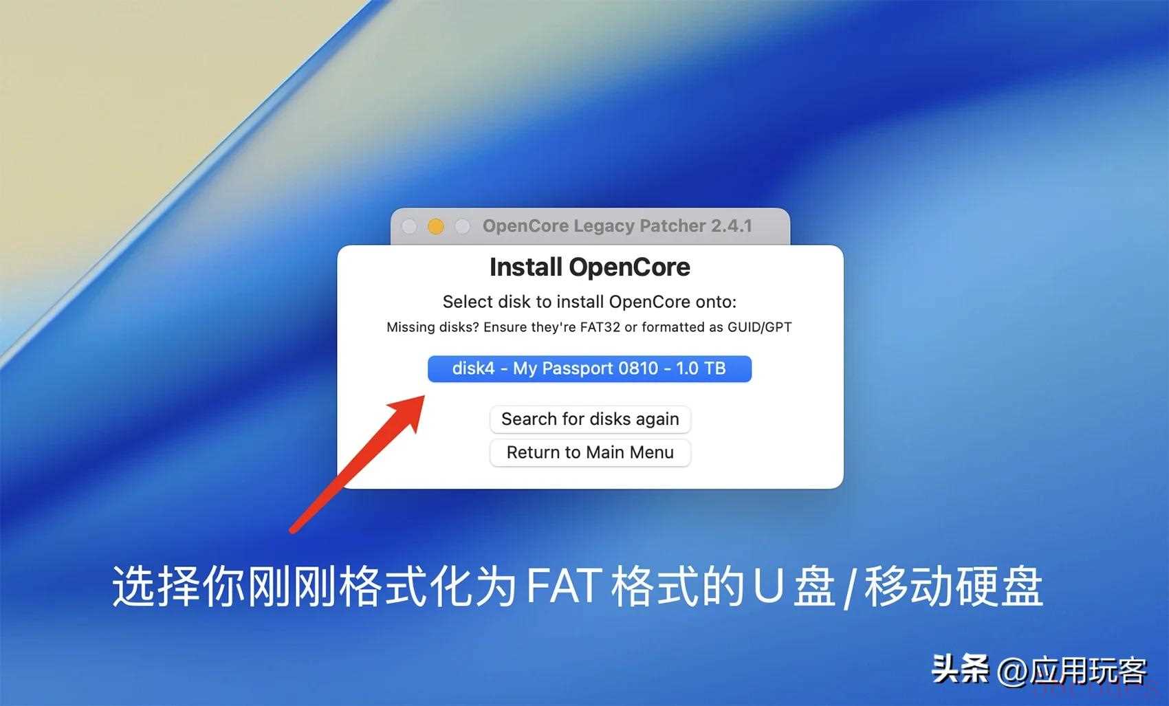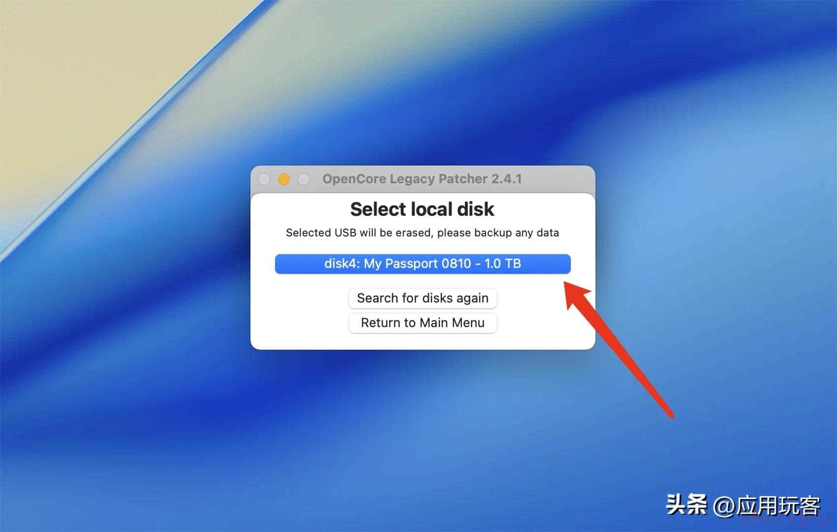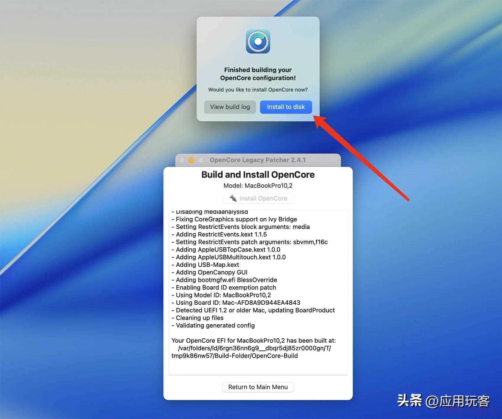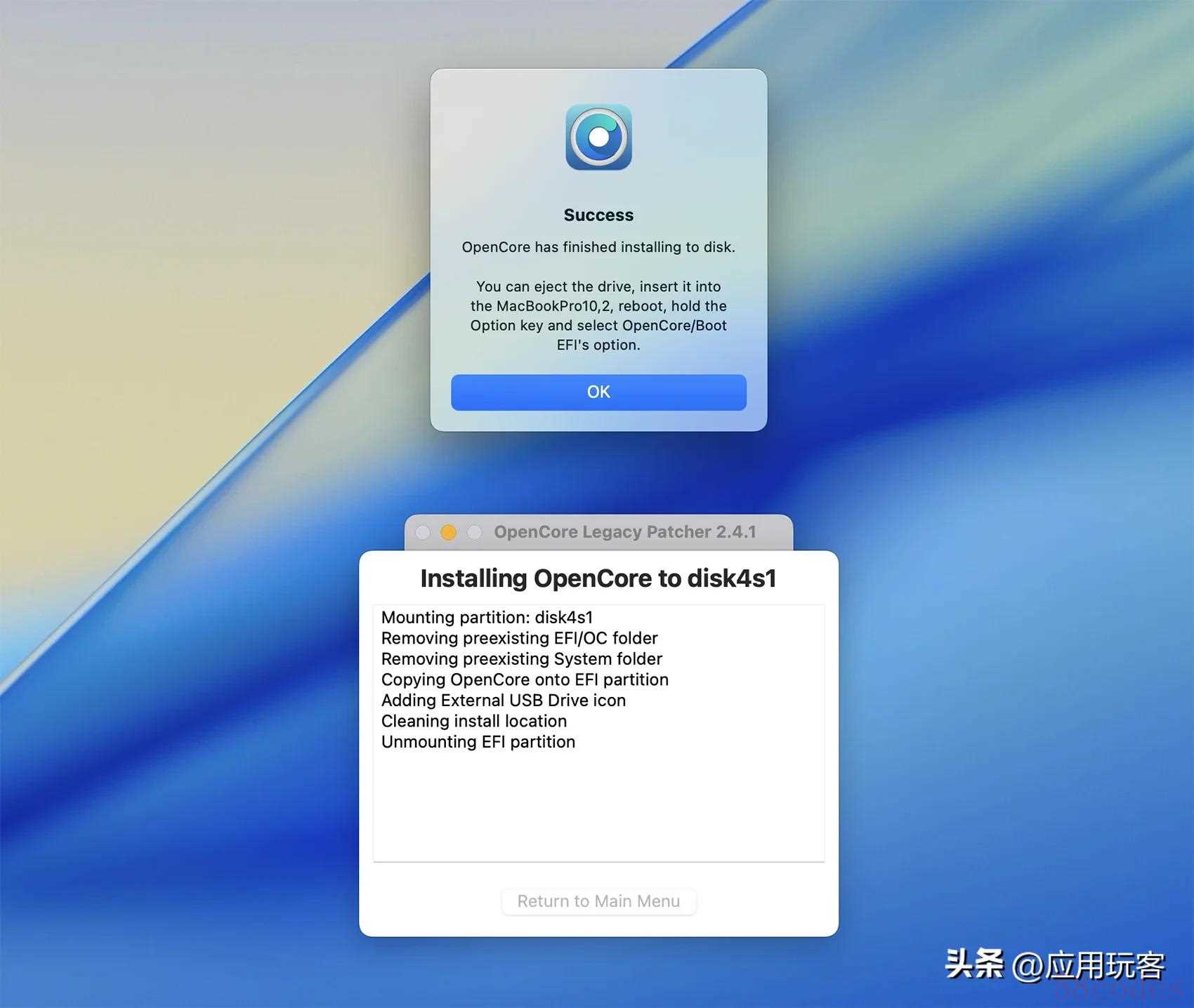 再点击 Install to disk 蓝色按钮,然后将 OpenCore Patcher 安装到内置硬盘,重启电脑后大功告成!