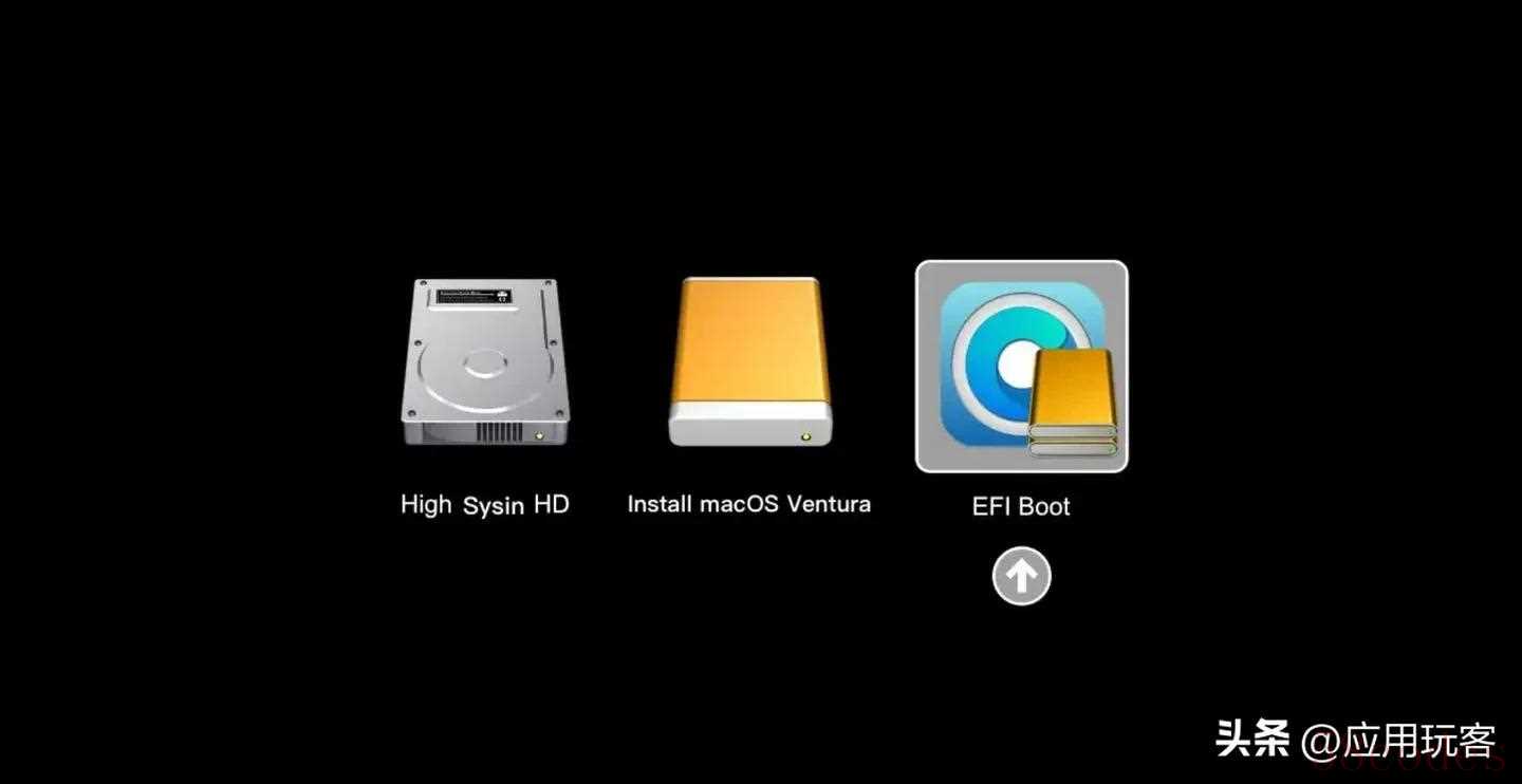 18、选择好型号后重复第 12 步即可,然后重启电脑(不是在老 Mac 电脑上制作启动盘的话,将制作好的 U盘/移动硬盘 插到需要更新系统的老 Mac 电脑上),重启电脑过程中按住 Option (⌥) 键,进入启动管理器后选择 U 盘(显示为 “EFI Boot”),进入引导菜单,在菜单中选择你的 macOS 安装盘(显示为 “Install macOS ”)按回车键,选择安装目标磁盘(建议是一个空白分区或专门的硬盘,硬盘格式为 APFS 或 Mac OS 扩展,内置系统盘必须 APFS 格式),然后按提示更新系统即可;