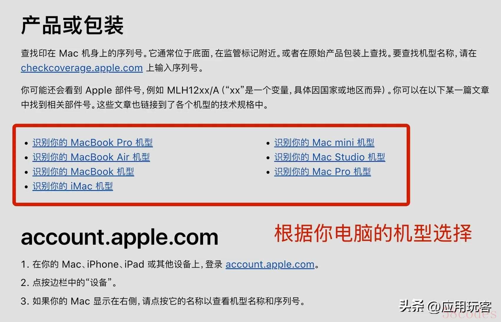 不知道如何选择的话 【点击这里查看】 如何查找 Mac 机型名称和序列号!