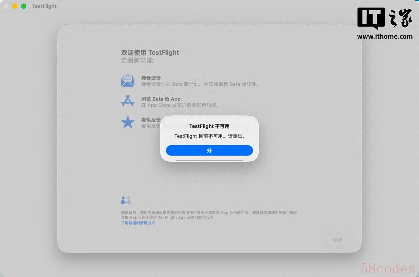 IT之家 10 月 20 日消息,据IT之家小伙伴反馈,苹果 TestFlight 今日午间出现不可用的情况。