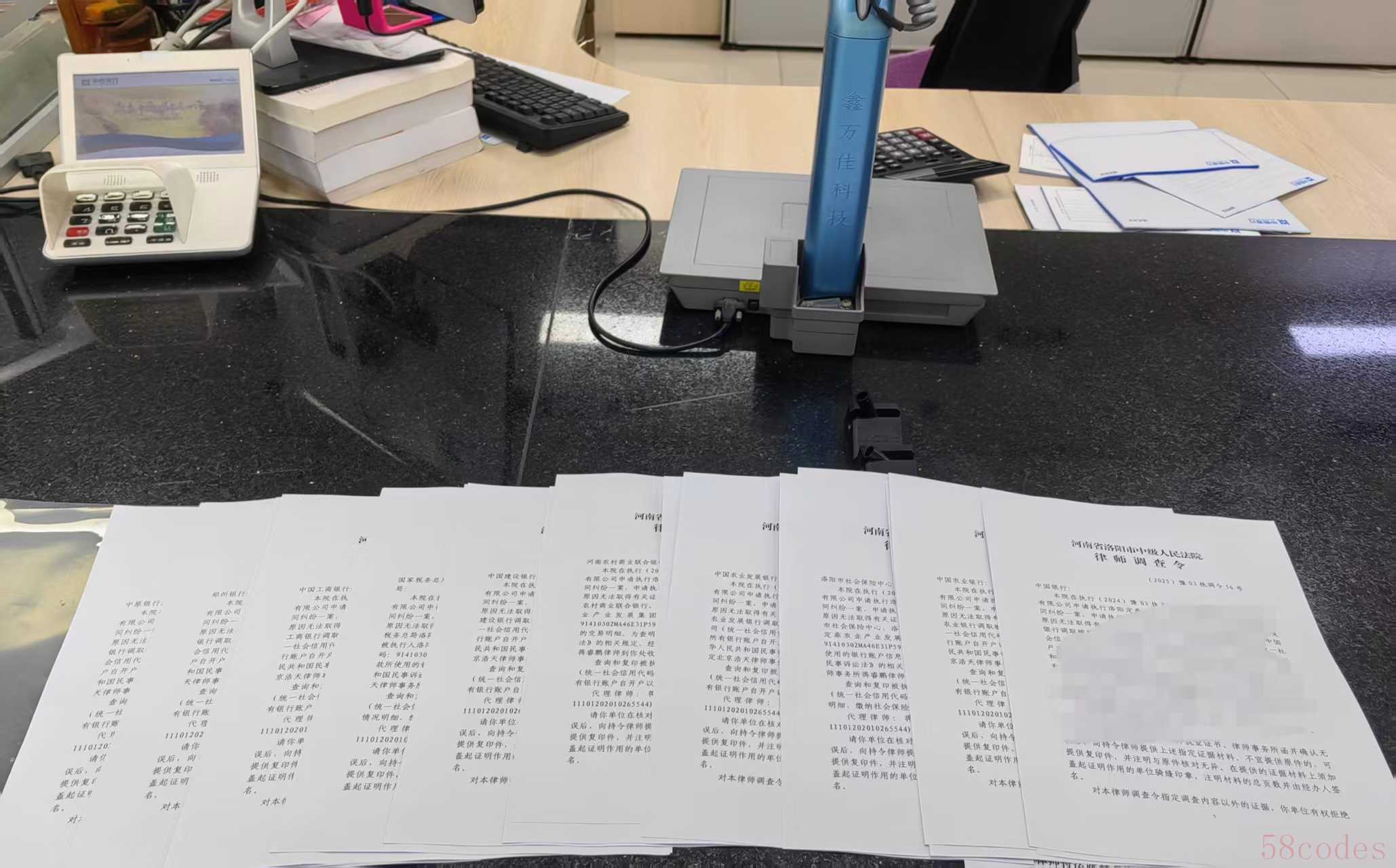 2025年4月,蒋睿鹏在河南洛阳调查被执行人的银行账户流水和税务资料,开了十几份调查令。受访者供图