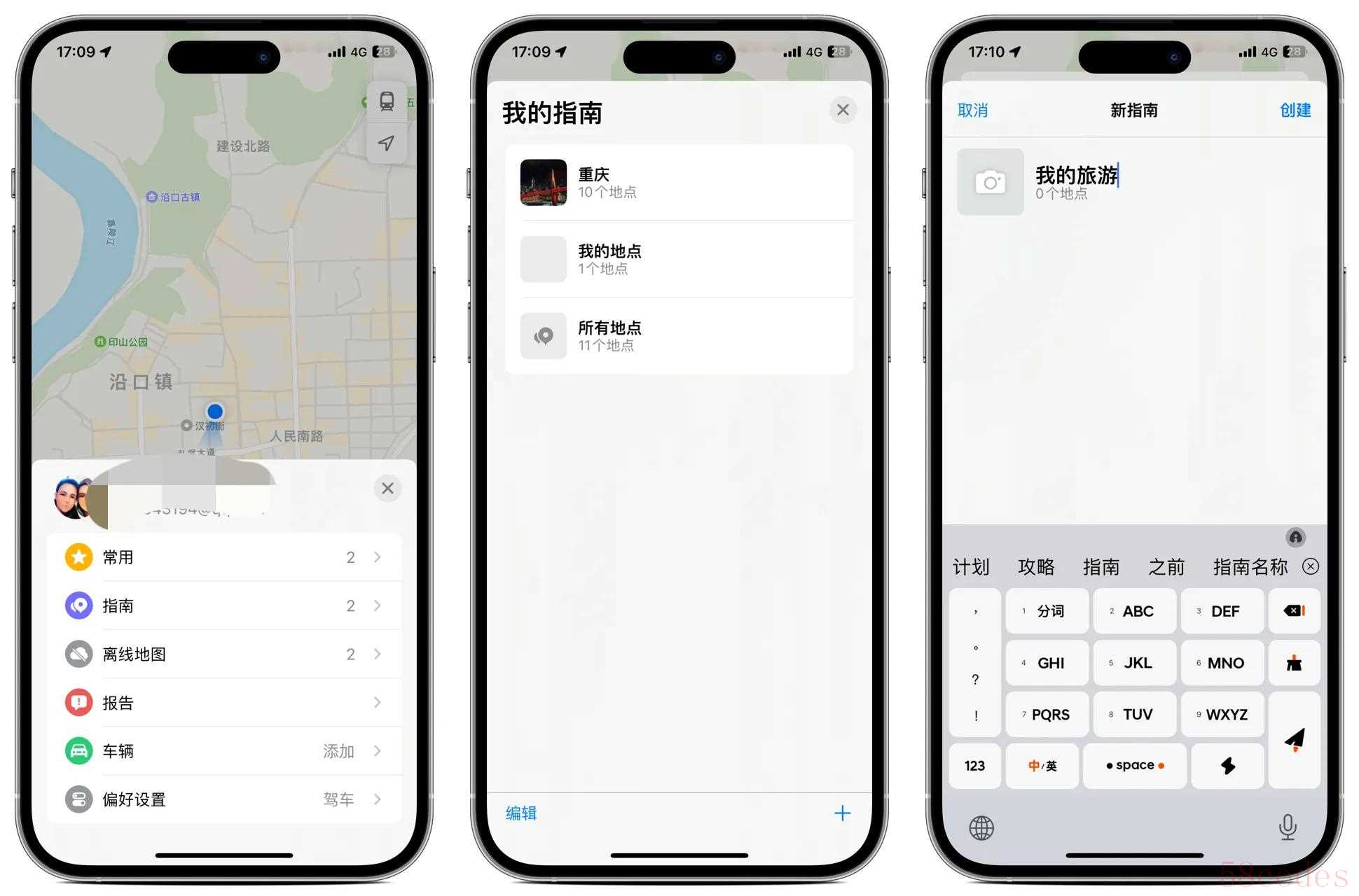 旅游之前都必须要制作旅游攻略,很多人都还在用办公软件制作,非常的麻烦,如果你拥有IPhone,那就有福了,今天我教你三分钟制作你的旅游攻略,完美规划避坑路线,1、地图指南打开地图,点击头像,然后选择“指南”,然后新建一个指南。