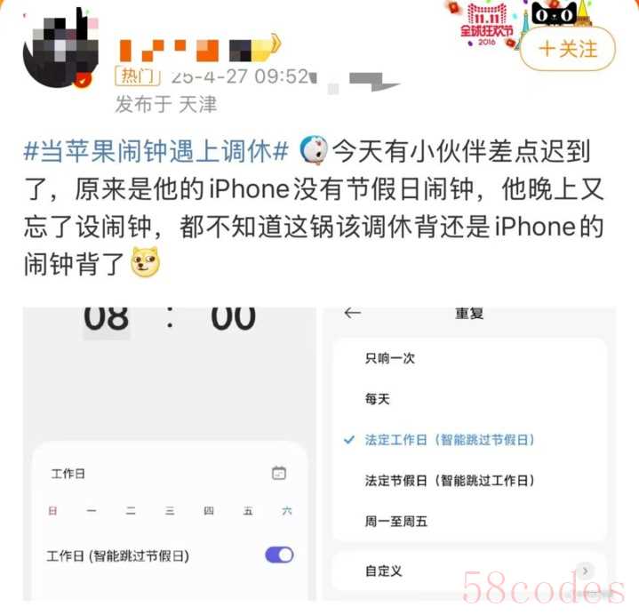 4月27日,“苹果闹钟遇上调休”相关话题登上热搜。