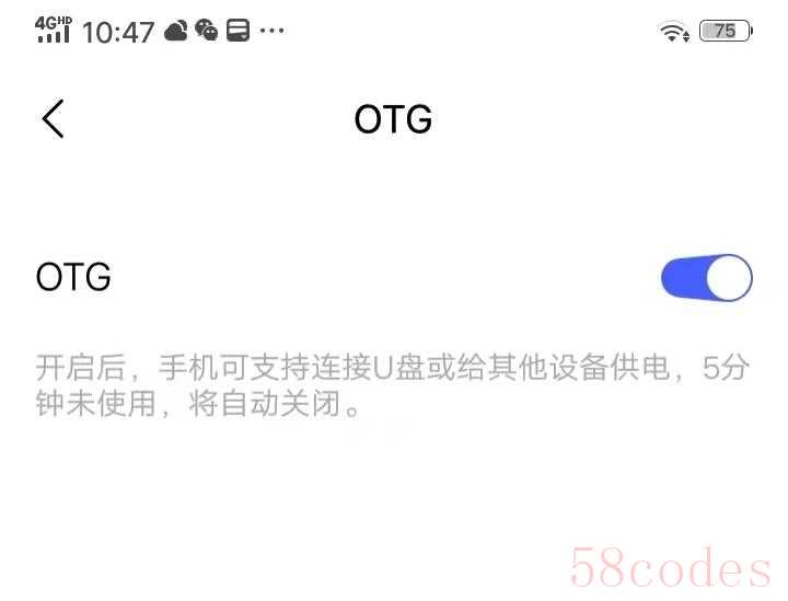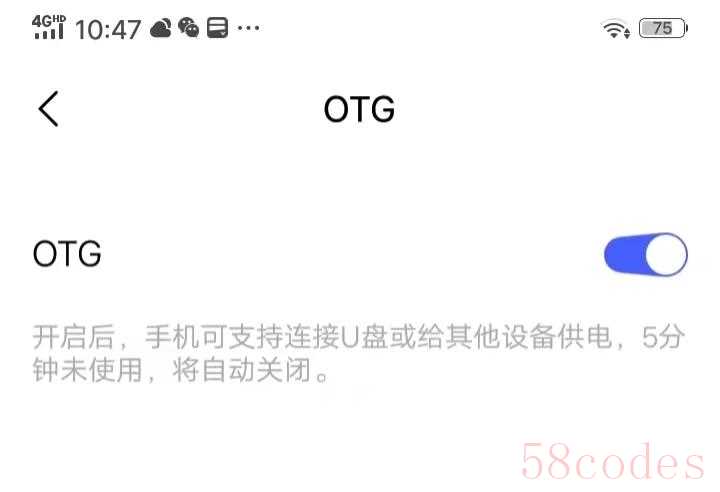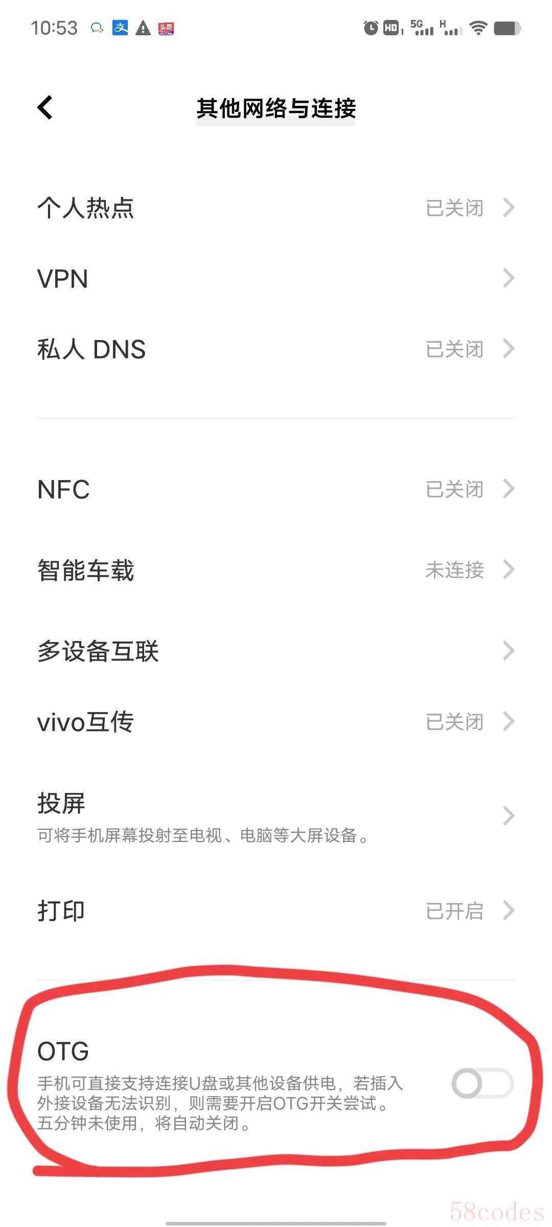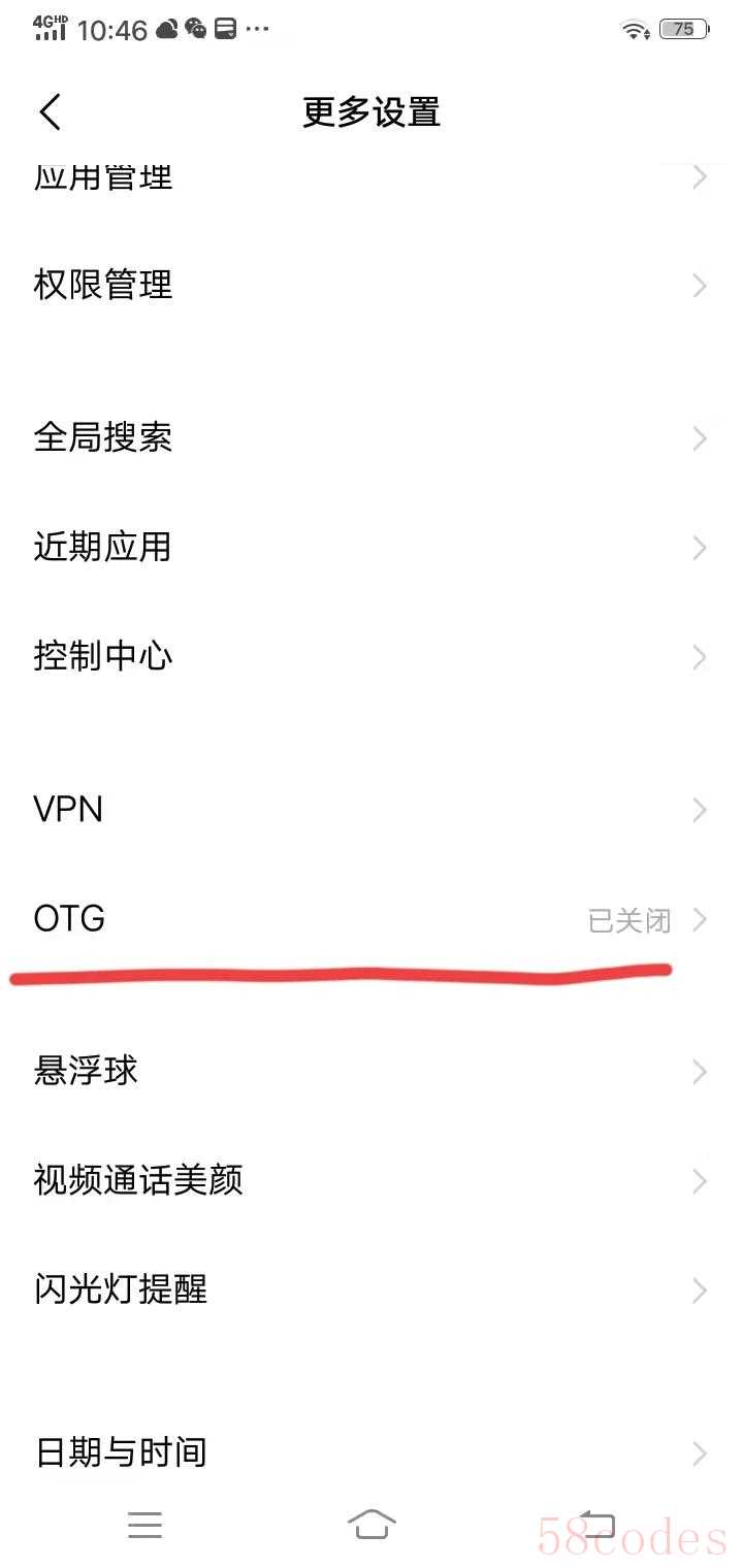 点开更多设置后找到OTG,这时候是关闭状态,把它打开就行。