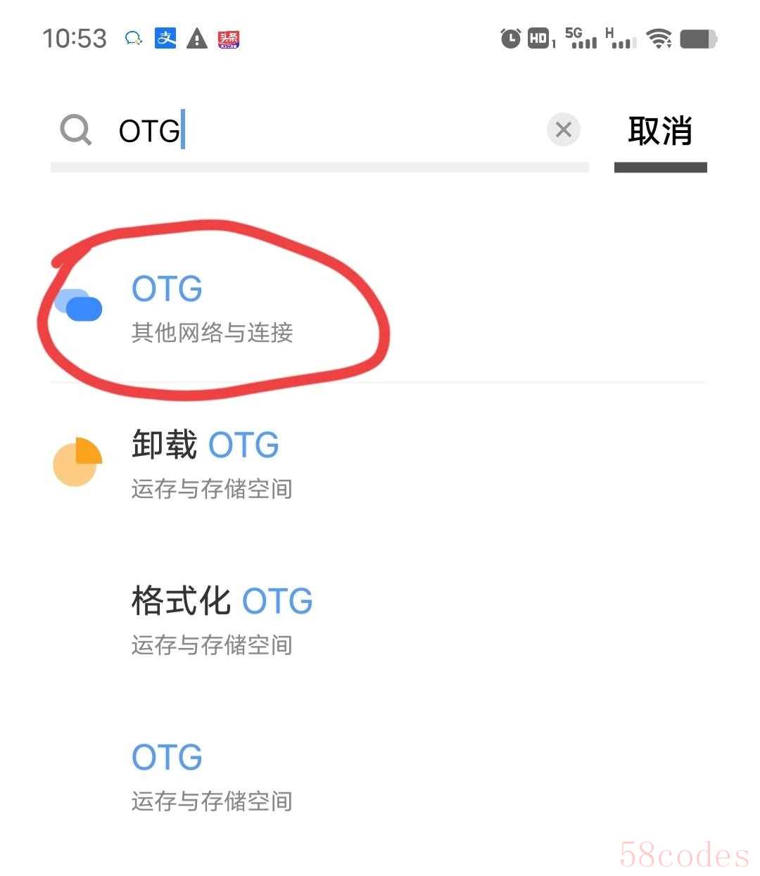 IQOO系列的手机稍微复杂一点,因为在IQOO手机的设置里面是没有更多设置这个选项的,也找不到OTG的开关,这时候就需要在设置上部搜索栏输入OTG,