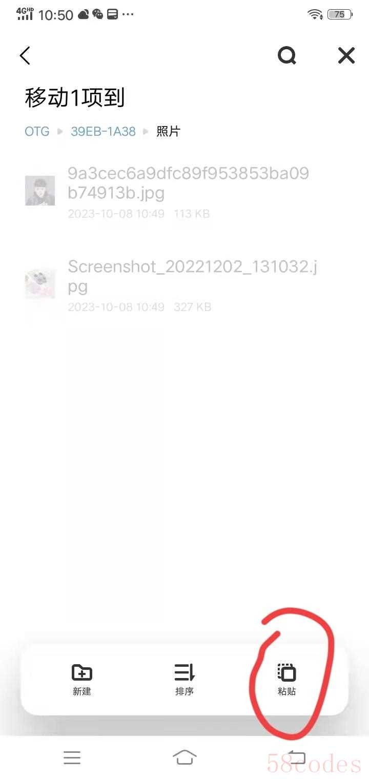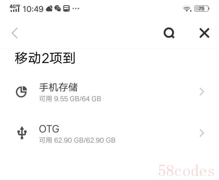 点击移动,选择移动到OTG,然后点开OTG在里面新建一个文件夹,可以分照片,视频等不同的文件夹,把移动过来的内容粘贴到文件夹里就可以了。
