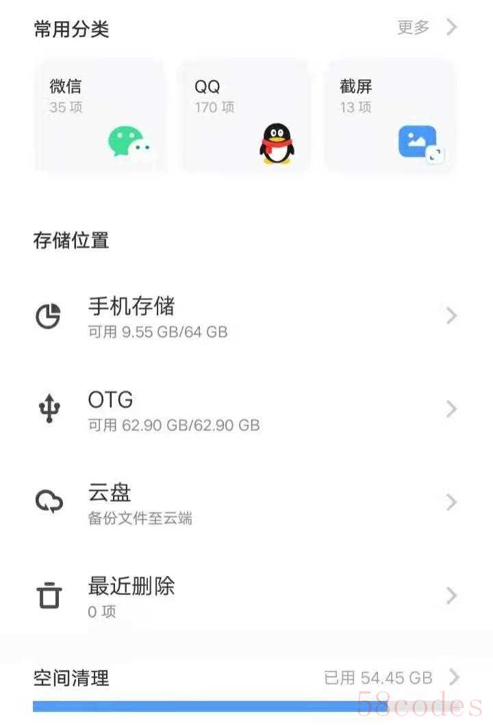 点开文件管理后,可以看到手机存储下面有一个OTG存储。
