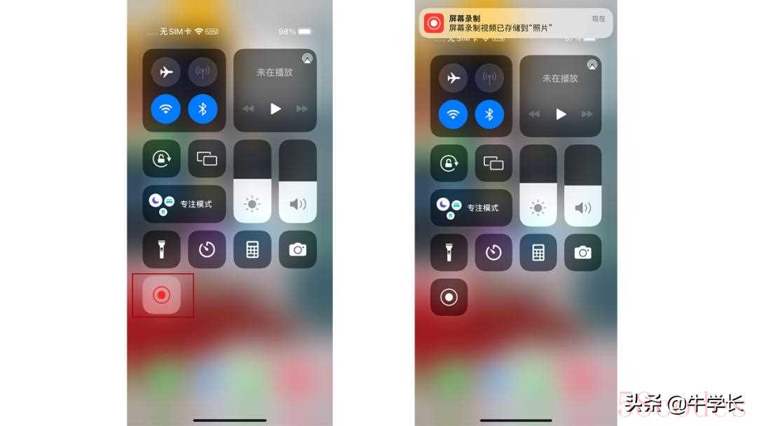 手指从iPhone屏幕右上角下拉,即可看到新增的【屏幕录制】功能键。