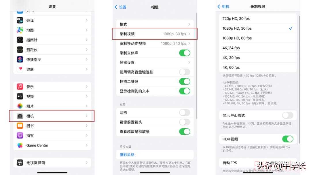 只需打开iPhone【设置】-【相机】-【录制视频】,即可调整视频的参数,非必要不选4K,十分占用手机内存。