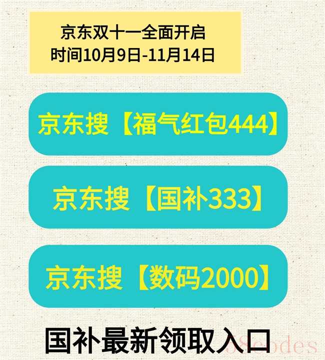 三、时间红线:这些节点绝不能漏想成功申领国补,必须牢记以下关键时间节点,避免因超时错过优惠:汽车补贴申请:需在10月31日前提交申请,12月前完成购车流程才能拿到补贴款,超时无法申领;退货截止时间:若需退换补贴商品,需在12月20日前完成,否则补贴资格直接作废,且无法重新申领;每日放券高峰:各省份放券时间固定,山东9点、江苏10点、广东11点、浙江14点、福建20点,建议按所在省份定好闹钟,准时抢券;补贴动态查询:全国国补剩余额度、省份暂停情况,可在京东搜索「国补333」实时查询,避免白跑一趟或无效抢券。四、叠加技巧与避坑指南1.基础叠加方式(最大化优惠)第一步:抢到国补资格;第二步:领取京东「福气红包444」或淘宝红包,叠加国补使用;第三步:额外叠加地方消费券,如“粤消费”“苏新消费”等,可再减5%-10%;第四步:如有旧机,参与以旧换新抵现,叠加国补后优惠更大,例如一级能效空调最低1599元即可入手。2.避坑指南(这些情况会导致补贴失效)地址不一致:申领补贴时填写的地址,需与下单地址、收货地址一致;发票缺SN码:购买家电、数码商品后,需索要含SN码的发票,否则无法核销补贴;先下单未领券:需先领国补资格再下单,直接下单后无法补领补贴;重复下单:同一商品、同一用户仅能享受一次补贴,重复下单会导致补贴失效;委托他人代抢:国补实行实名制,委托他人代抢会因身份信息不符,导致补贴无法使用。当前国补额度已进入紧张阶段,10月是最后黄金抢补期。打开京东APP,搜索「国补333」(家电品类)或「数码2000」(数码品类),领取国补后叠加「福气红包444」,抓紧10月行动,别等11月面临激烈秒杀、12月无券可领空后悔!