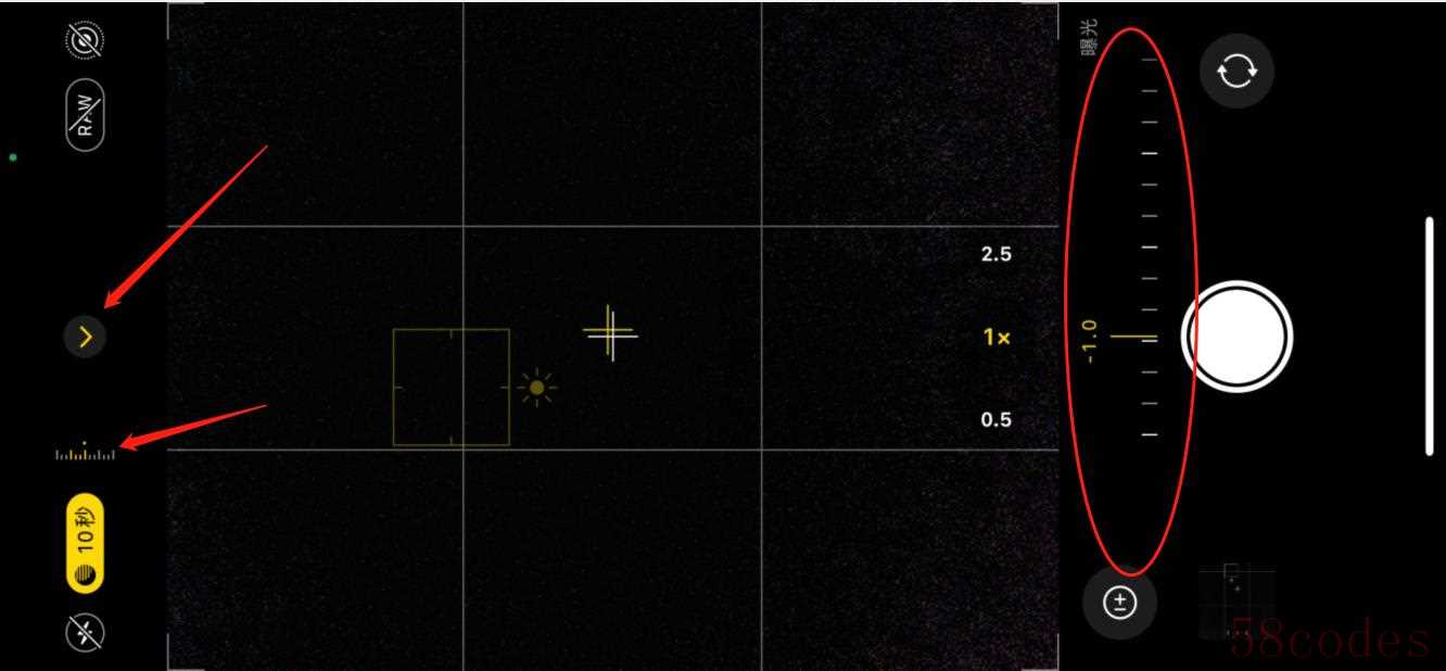点击左下角带刻度的小图标,右侧就会出现调整曝光的滑块,上下滑动可以调整照片的曝光。我的截图是横屏,如果是竖屏的话,这个带刻度的小图标就在左上角