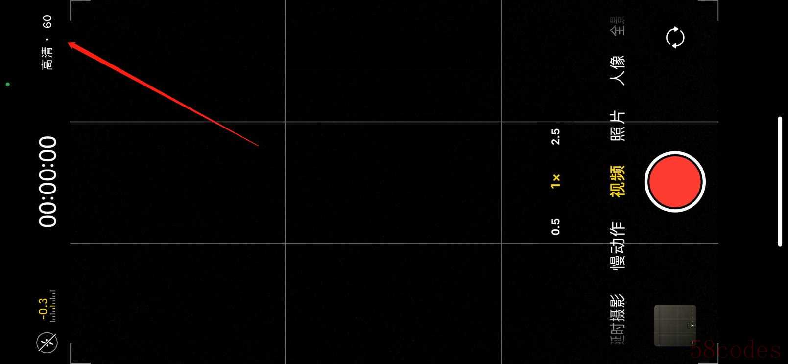 拍摄视频和慢动作时,点击左上角(横屏是左上角,竖屏是右上角)调整视频的帧率。你可以根据需要选择不同的帧率。