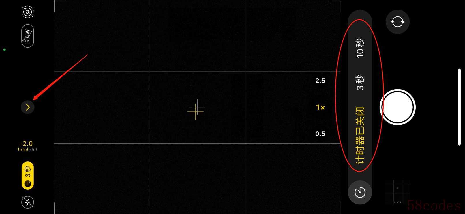 点开拍摄界面的箭头图标,就可以看到计时器了。里面有3秒和10秒两种选择。