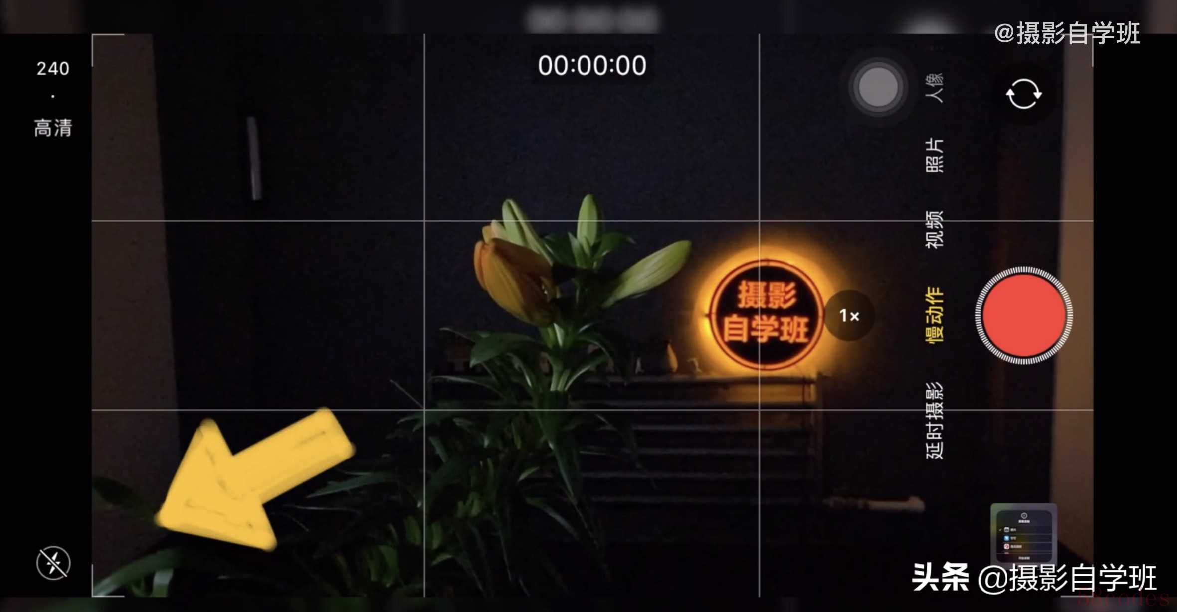 慢动作:也是一个视频的呈现,可以说是相当于慢镜头,左上角的闪光灯注意,一般都是关闭状态,因为闪光灯都是用来照明的,在拍摄上,并不能起到一个很好的作用。