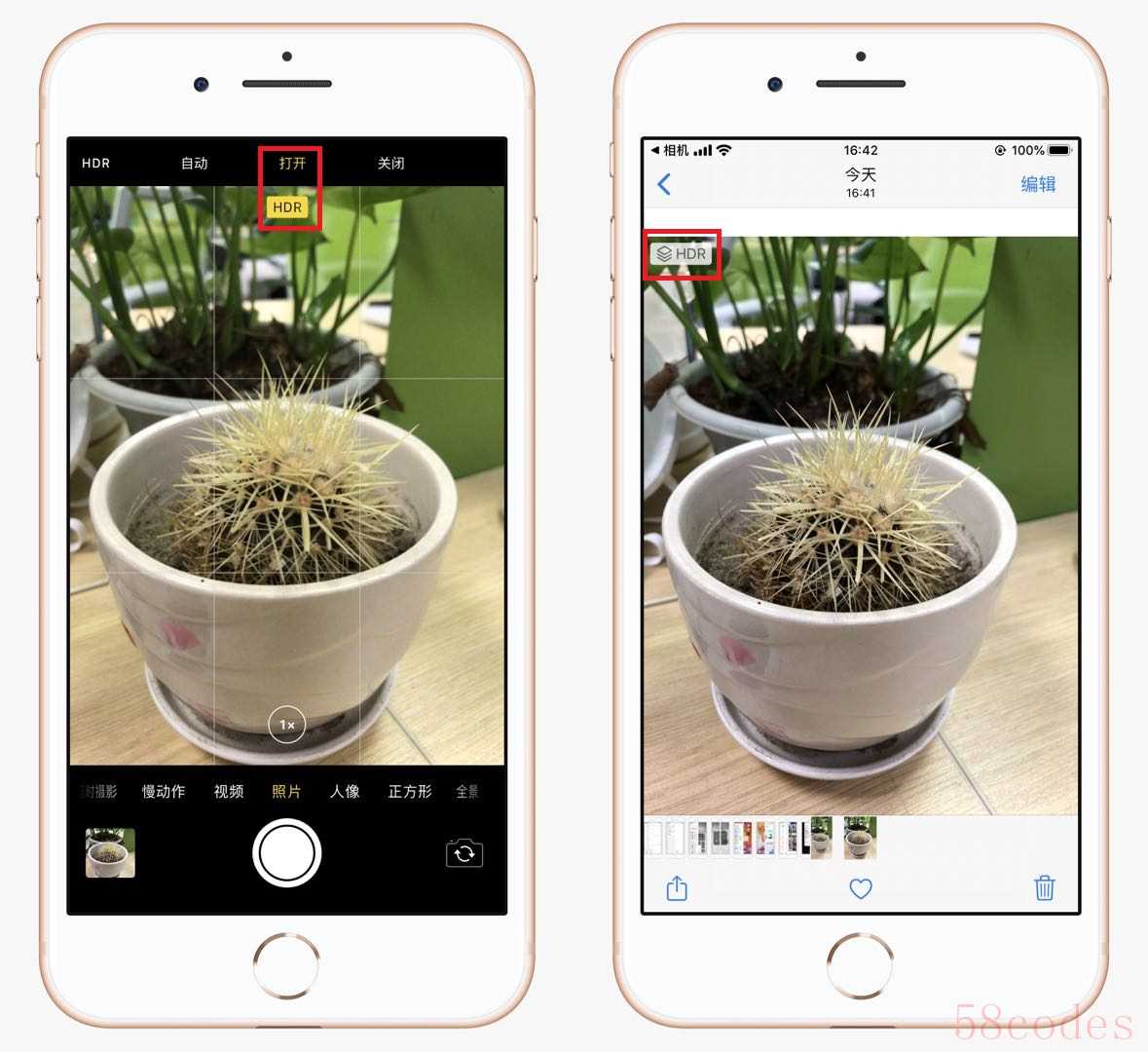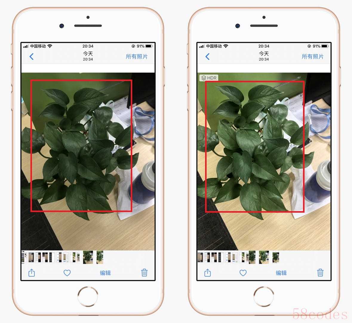 手机拍照时,将顶部的HDR功能给打开,将会拍出三张不同曝光程度的照片,一种是欠曝光、一种是正常曝光、一种是过度曝光,自动将最佳部分合并成一张。