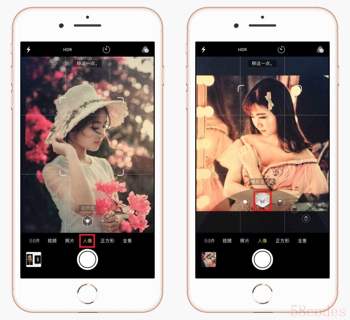 打开相机选择【人像】,可以切换自然光、摄影室内光、轮廓光、舞台光和单色舞台光效果,使用人像模式拍照,可以将杂乱的背景虚化,突出人物主体。