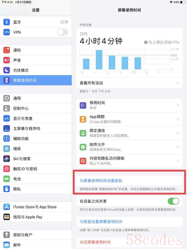 也可进入“设置”,点击“屏幕使用时间”,开启后即可使用。