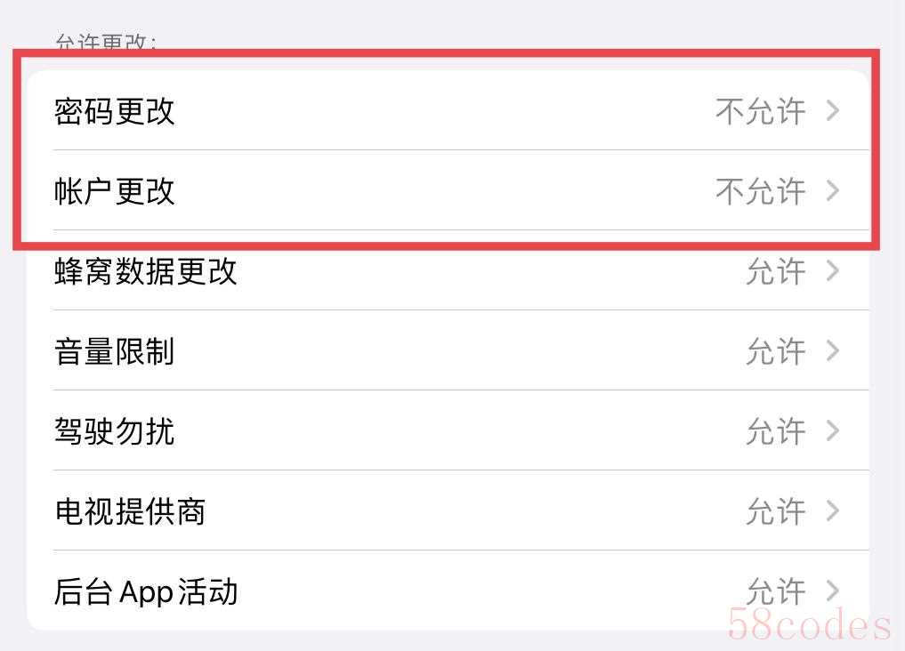 强烈建议家长点进“内容和隐私访问限制”,将“密码更改”和“账户更改”变更为“不允许”,这样,孩子就无法更改系统账户和密码,进而突破之前设置好的各种使用限制了(想偷玩游戏?没门!)。
