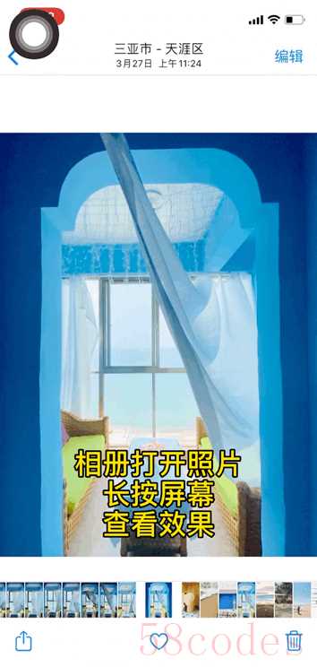 ③ 在相册里打开使用【实况】功能拍的照片,点击右上角编辑。