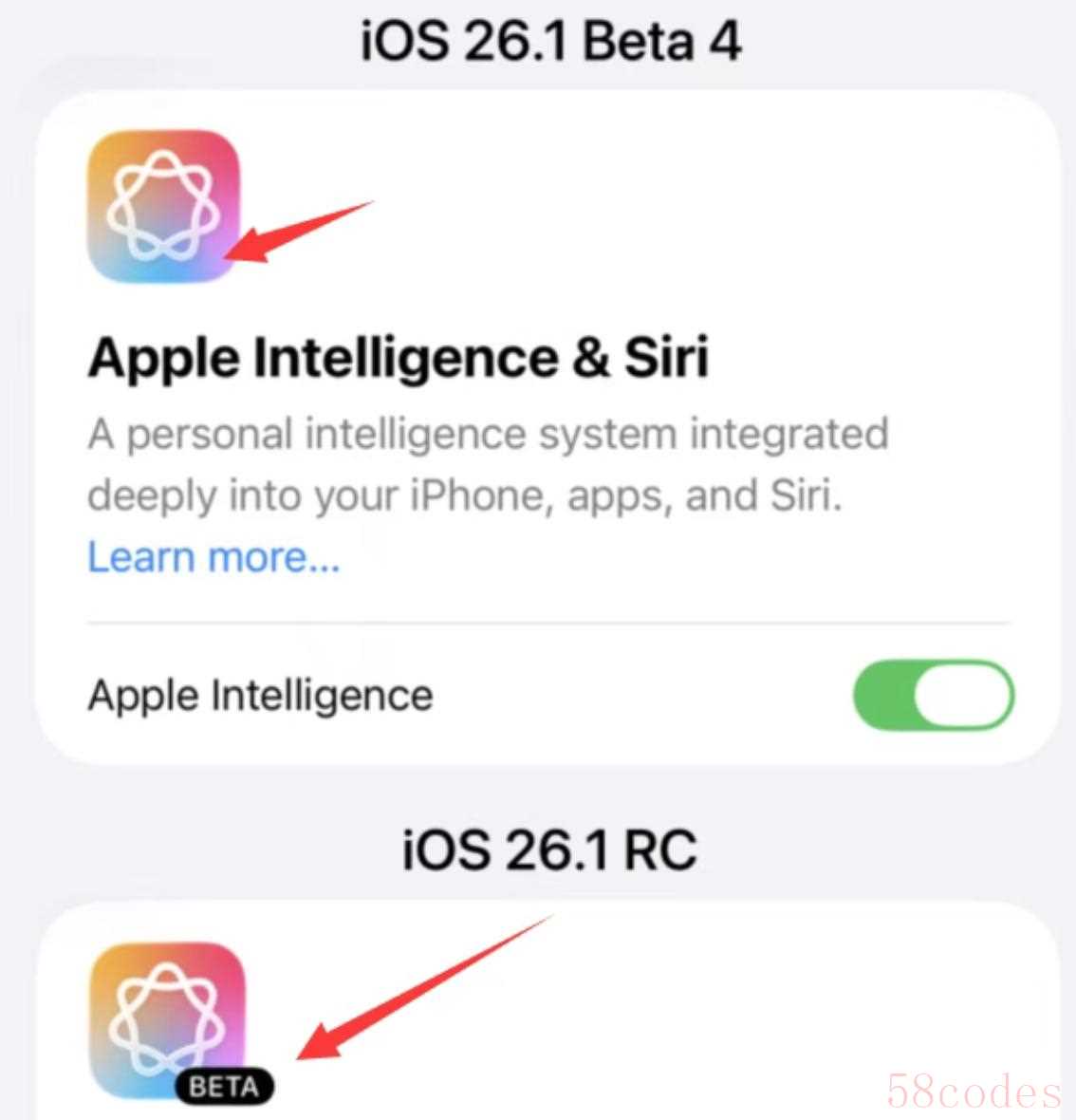 不过苹果智能 AI 恢复了 beta 提示,在上一个内测版本中,Apple Intelligence 中取消了 BETA 这几个字母,但更新后这几个字母又出现了,估计苹果 AI 又要等一段时间了。