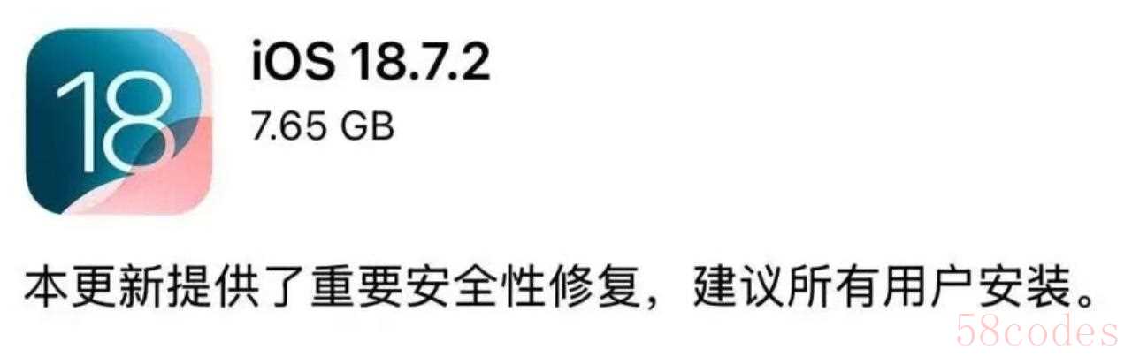 另外 iOS 18.7.2 RC 版也没有新功能,根据描述文件来看,这次的更新主要提供了重要安全性修复,苹果建议所有用户安装。