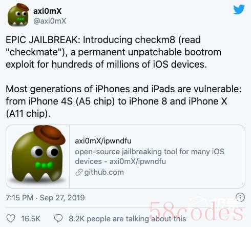 去年秋天,iPhone 爆出了史上最严重,波及范围最广的漏洞:Checkm8。这一漏洞存在于iPhone的bootrom程序中,而程序则被固化在手机芯片上,因此无法通过系统更新修复。更严重的是,这个漏洞影响范围极广:从退休的iPhone 5s到全面屏时代的iPhone X,受到波及的设备全球足有上亿台。也难怪最早公开相关资料的黑客@axi0mX,称之为史诗级越狱漏洞。