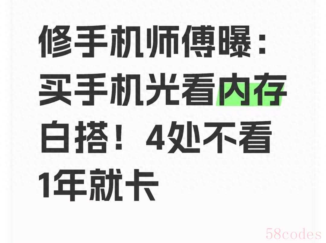 我们来分析一下这位修手机师傅的说法。这句话指出了单纯关注手机内存(RAM和存储空间)的误区,并强调了其他四个方面的重要性,否则手机可能在一年内就变得卡顿。