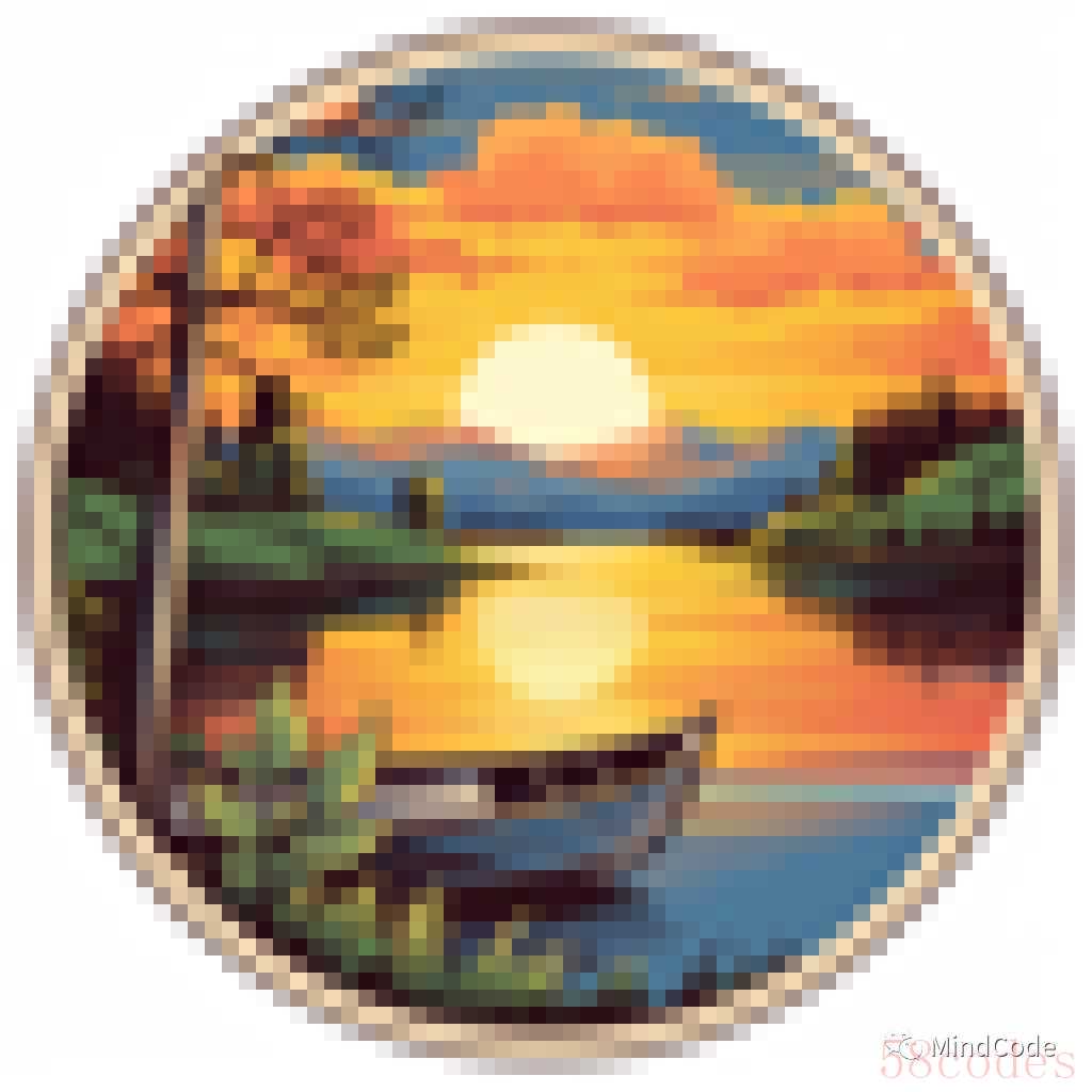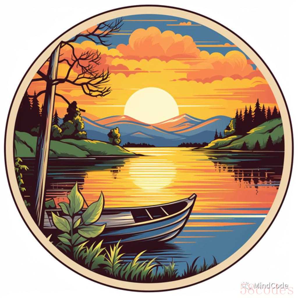 没错,不仅你看出来了,所有人到这一步都看出来了,且毫不费劲:一艘船、水面、远山、太阳、云朵、树木,以及整体的圆形。