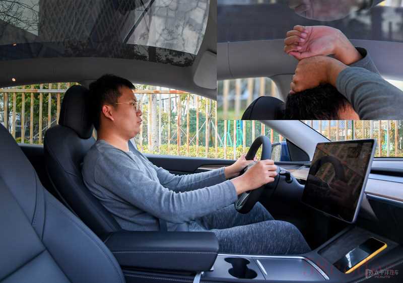 身高190cm的体验者,将前排座椅调整到最低的位置,头部剩余空间两拳,前方视野比Model 3宽敞很多,并且Model Y为了增加坐高,在座椅下面“动了手脚”。