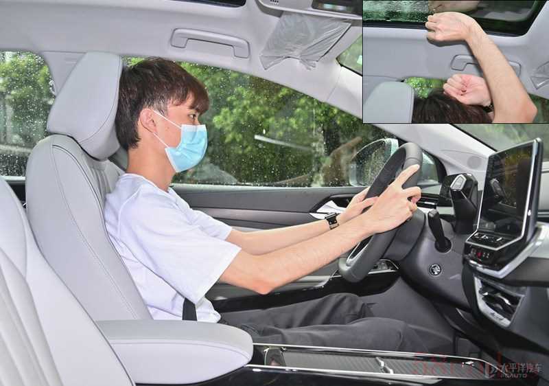 身高180cm的体验者,将前排座椅调整到最低的位置,头部剩余空间两拳有余。