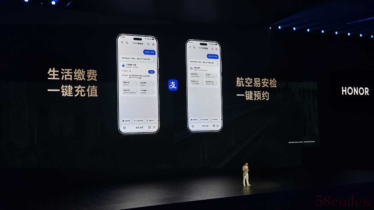 MagicOS 10 系统还将行业首发 MCP 架构,让 YOYO 全面接管系统应用,配合 AI 执行引擎号称“干啥都行”,还能接入支付宝实现生活缴费一键充值、一键预约航空易安检等,可互联苹果“全家桶”、全品牌 PC,还支持与全品牌安卓手机互传照片等。