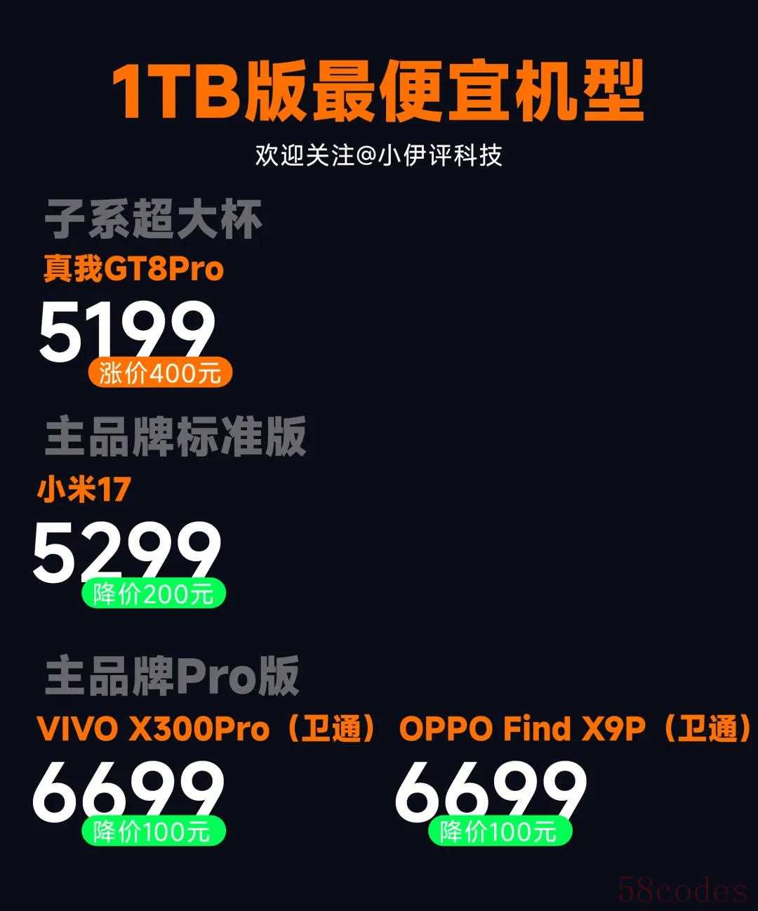 2、1TB版最便宜的机型盘点(去年VIVO X200Pro和X9Pro都有特别的卫通版,相比较而言还便宜了)