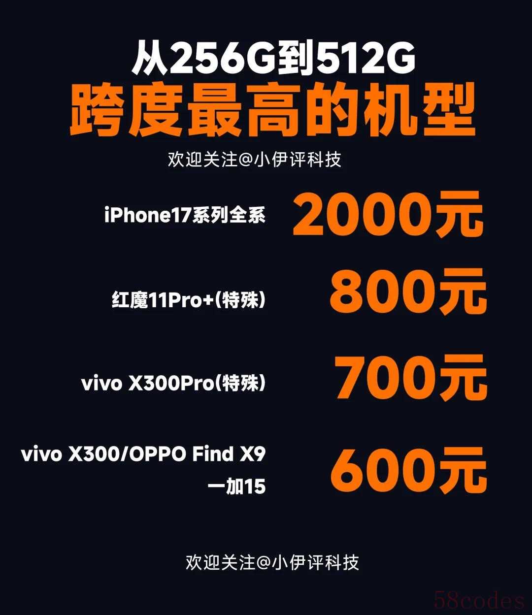 VIVO X300Pro比较特殊,他是从12+256G直接跳到了16+512G,涨价幅度达到了700元,所以虽然看上去价格比较高,但横向对比一下,他这个价格依旧要比小米17ProMax略低一点,只是跨度上比较大。