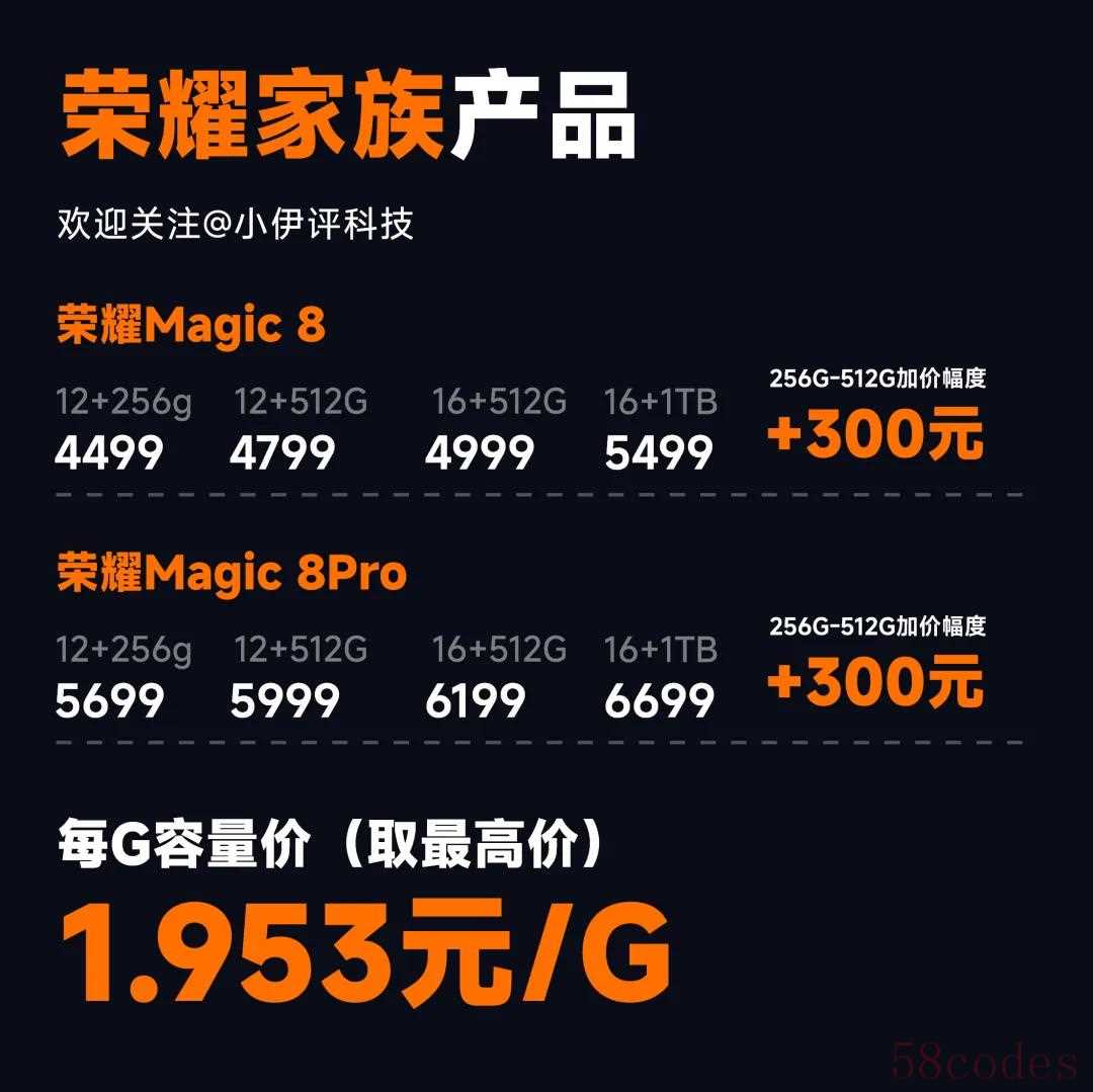 荣耀这边,今年则相对来说很良心,相比荣耀Magic 7系列是完全没有涨价,而且256G-512G版本的价格跨度也都不算大,都控制在了300元左右,横向比较一下就显得很良心。