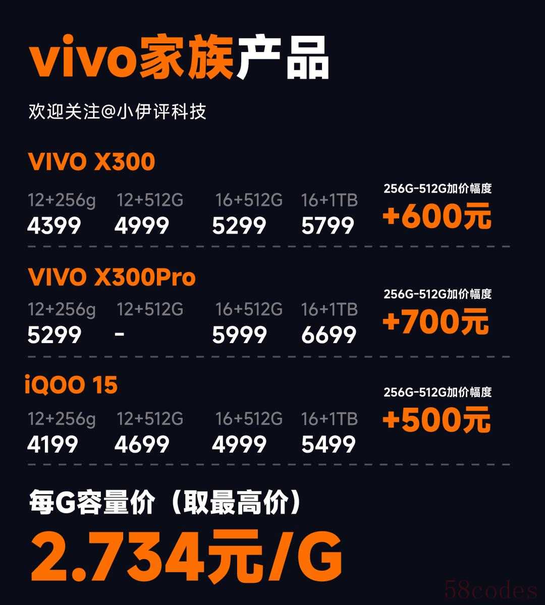 VIVO系这边,vivo X300从12+256G到12+512G涨价幅度达到了600元,跨度非常大,说白了,12+256G你在线下也就买不到,完全就是个吉祥物(买的人也不会太多)