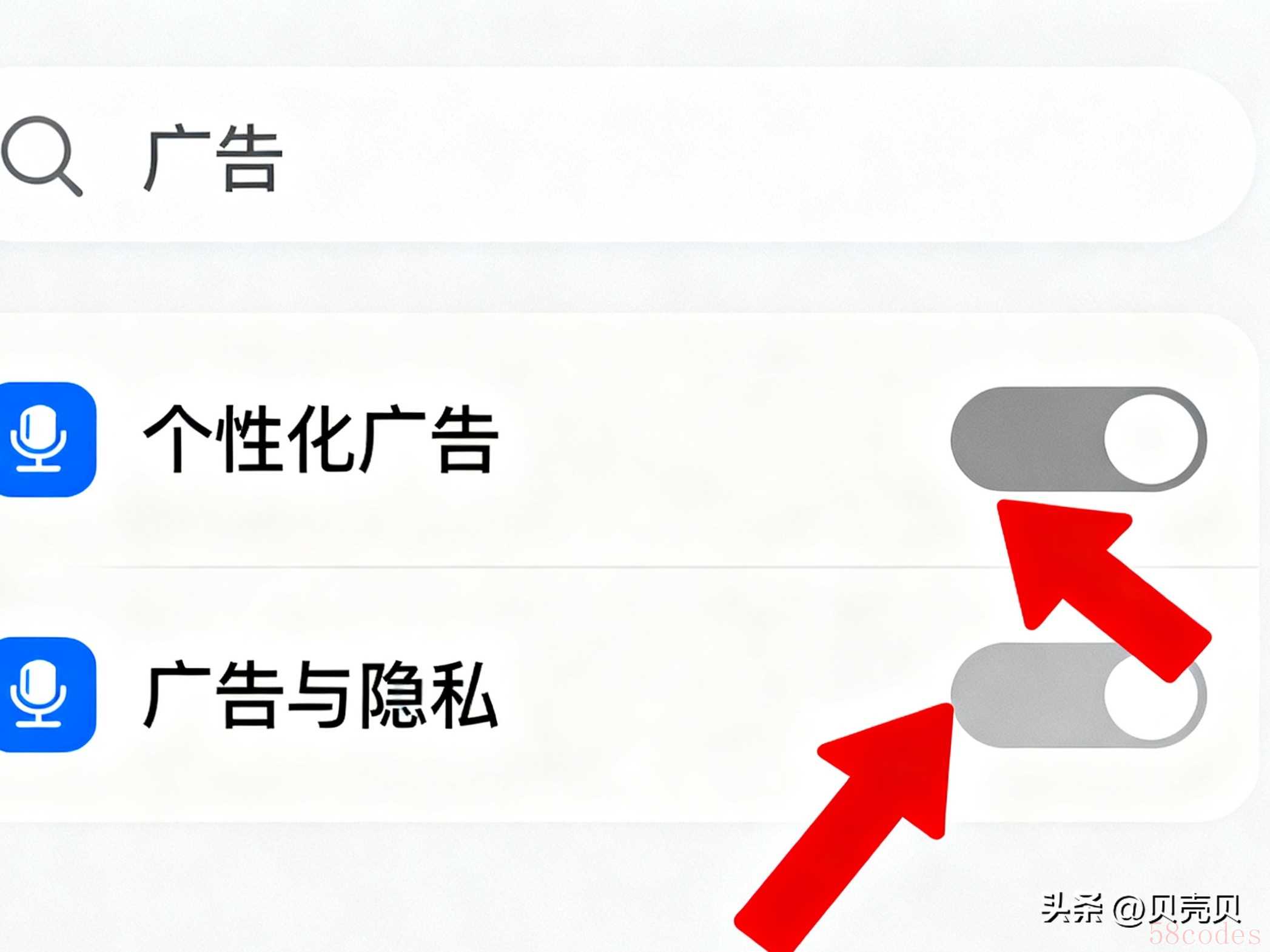 2. 关闭「个性化广告」(蓝色变灰色,不推精准广告);