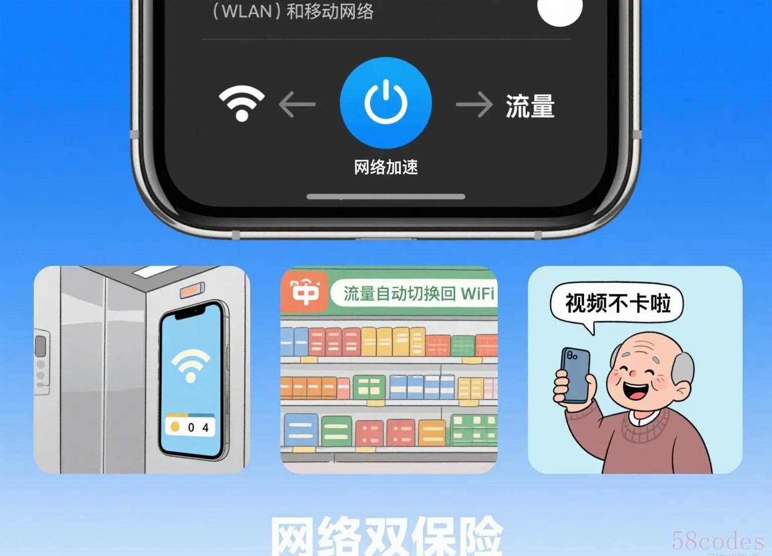 把这个开关打开,手机就会在 WiFi 信号弱的时候自动切换到流量,流量信号差的时候又切回 WiFi,就像给网络装了 “双保险”。我在电梯里试了,以前发消息要等半分钟,现在打开这个开关,基本秒发成功!